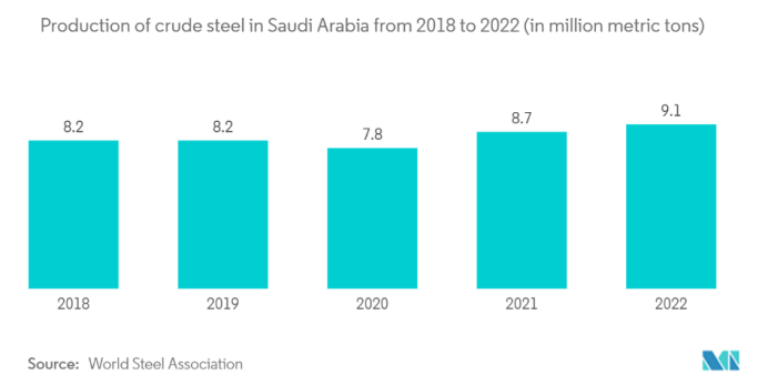 在COVID-19疫情后,沙特项目活动的反弹推高了钢材价格。例如,从2021年12月每吨约3,558沙特里亚尔(948.8美元)增加到2022年1月的近3,790沙特里亚尔(1,010.6美元)。钢材价格的上涨源于项目活动的复苏、国内需求增加以及钢材出口增长。