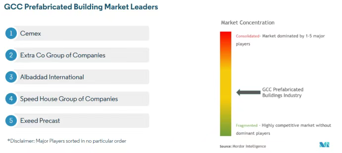 GCC预制建筑行业相对分散,市场上有许多国际和国内公司参与竞争。高资本要求和技术快速进步是新进入者的重要进入壁垒。由于预制建筑投资的增加以及即将开展的重大项目,预计在预测期内市场将实现增长。市场在预测期内为增长提供了机会,这预计将推动市场竞争。